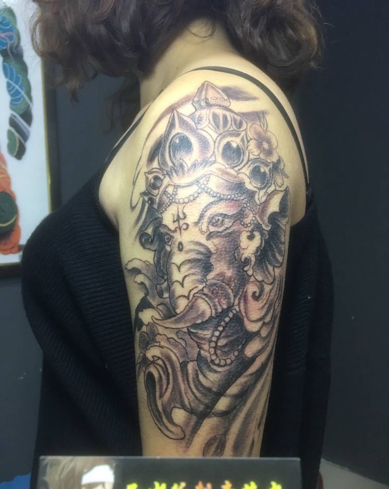 当前位置: 首页 >陕西省西安市纹身店-西少爷刺青艺术馆纹身图案>大臂象神纹身图片