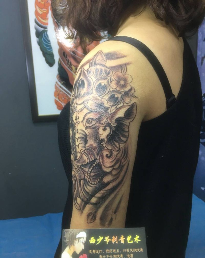 当前位置: 首页 >陕西省西安市纹身店-西少爷刺青艺术馆纹身图案>大臂象神纹身图片