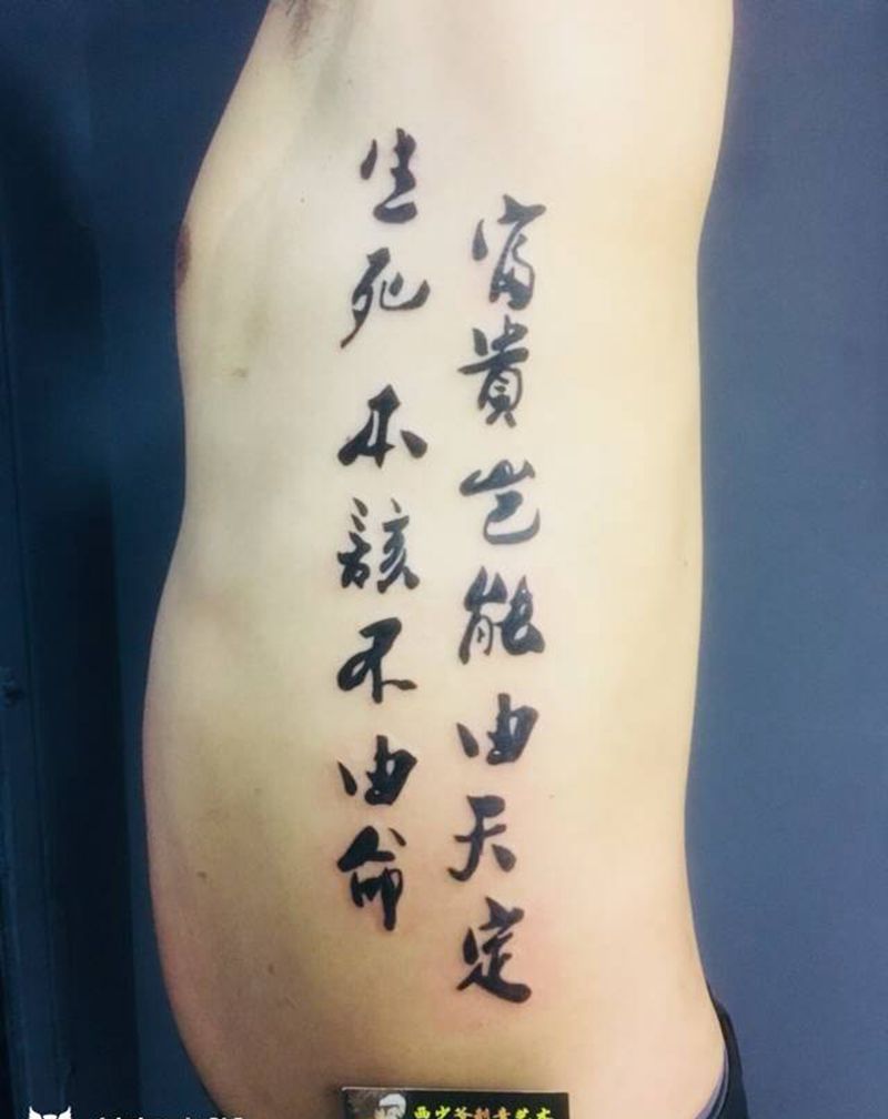 当前位置: 首页 >陕西省西安市纹身店-西少爷刺青艺术馆纹身图案>汉字纹身图片_腰部纹身图案