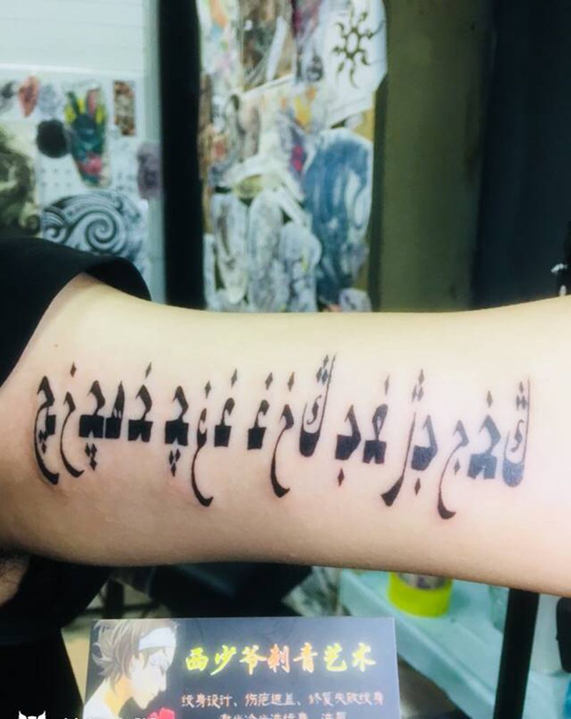 当前位置: 首页 >陕西省西安市纹身店-西少爷刺青艺术馆纹身图案>梵文字母纹身图片_手臂图腾纹身图案