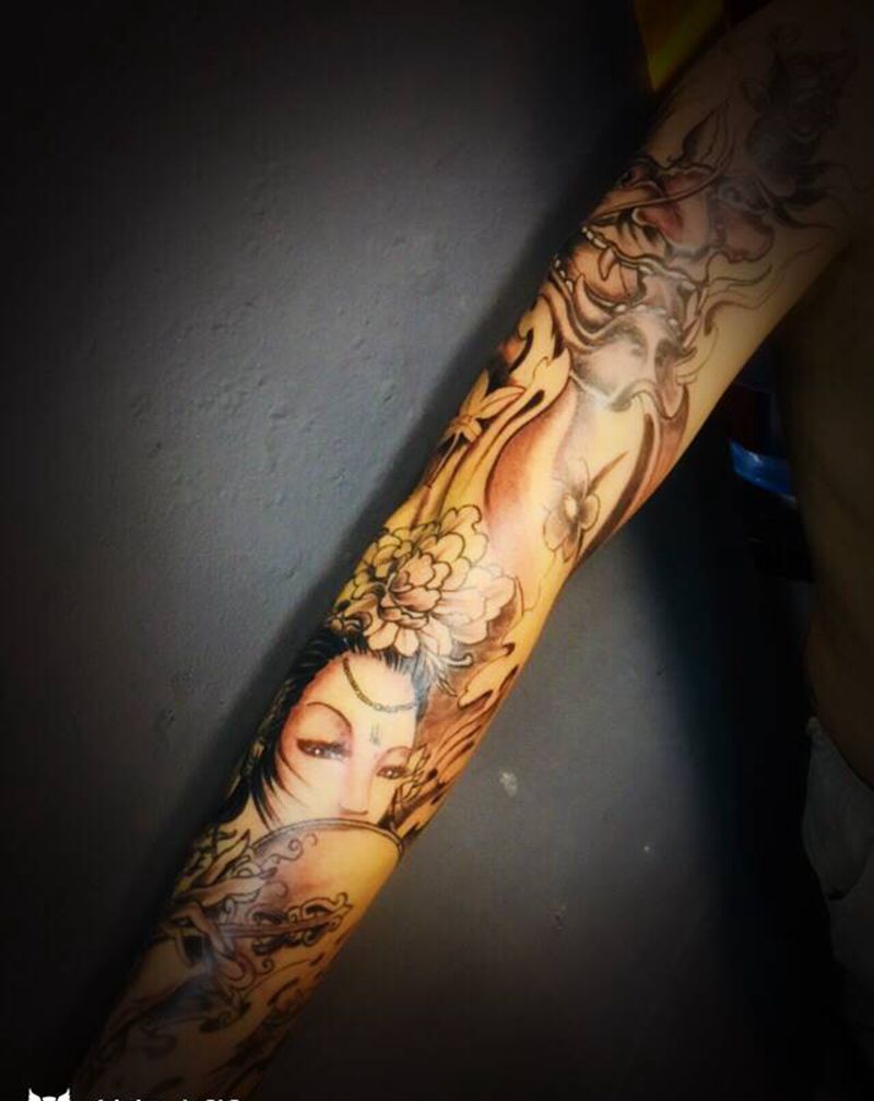当前位置: 首页 >陕西省西安市纹身店-西少爷刺青艺术馆纹身图案>花臂纹身图片_手臂新传统纹身图案