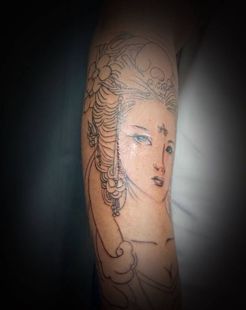 当前位置: 首页 >陕西省西安市纹身店-西少爷刺青艺术馆纹身图案>艺妓(未完成)纹身图片_手臂纹身图案