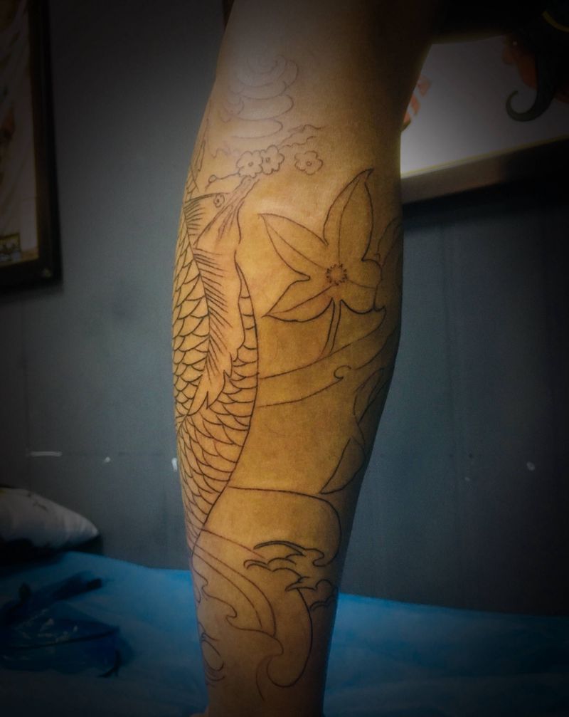 当前位置: 首页 >陕西省西安市纹身店-西少爷刺青艺术馆纹身图案>鱼纹身图片_腿部纹身图案