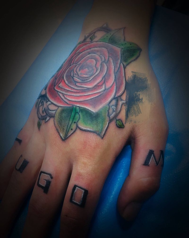 • 手背潮流时尚的玫瑰花眼睛纹身图案