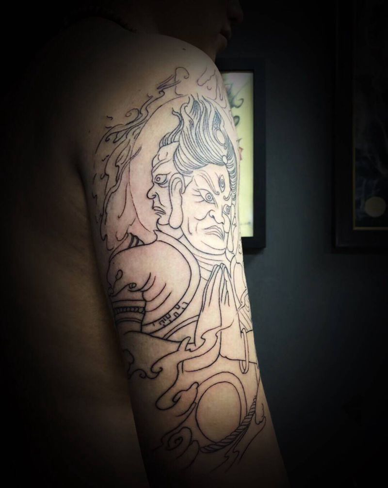 当前位置: 首页 >陕西省西安市纹身店-西少爷刺青艺术馆纹身图案>不动明王(未完成)纹身图片_手臂纹身图案