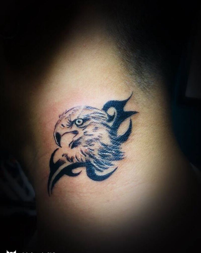鹰头纹身图片_颈部纹身图案