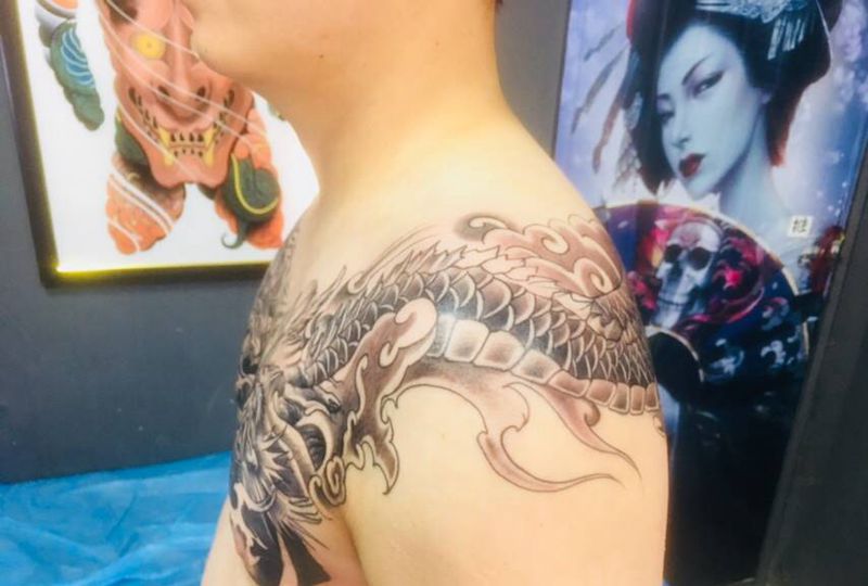 当前位置: 首页 >陕西省西安市纹身店-西少爷刺青艺术馆纹身图案>龙虎斗纹身图片_胸部背部新传统纹身图案