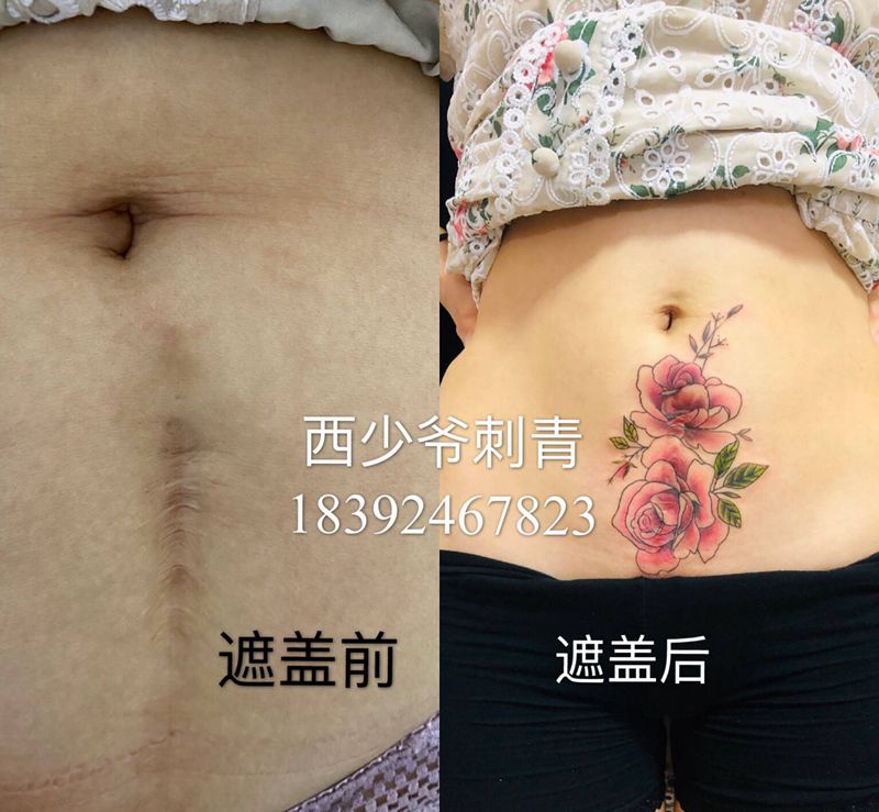 剖腹产遮盖遮盖花纹身图片_腹部新传统纹身图案