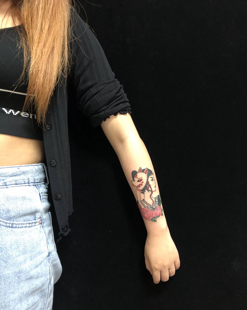 当前位置: 首页 >陕西省西安市纹身店-西少爷刺青艺术馆纹身图案>小臂小清新美女纹身图片_手臂新传统纹身图案