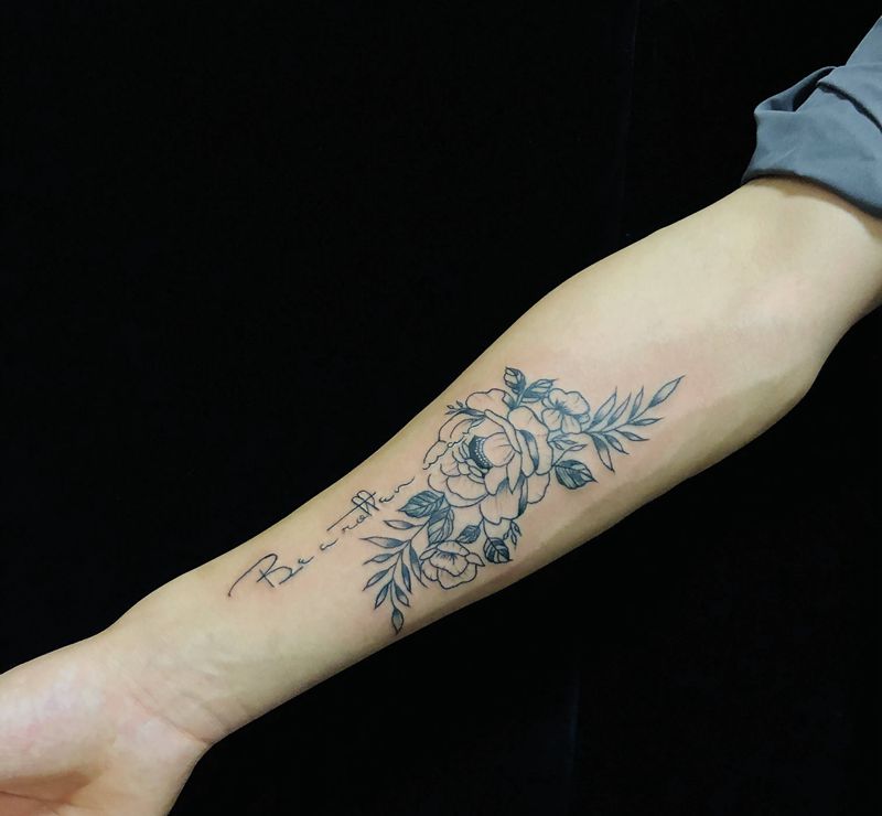 小臂素花纹身图片_手臂新传统纹身图案