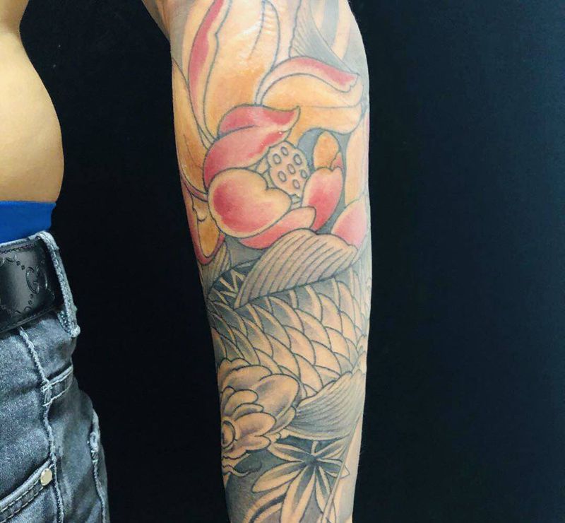 当前位置: 首页 >陕西省西安市纹身店-西少爷刺青艺术馆纹身图案>花臂纹身图片_手臂新传统纹身图案