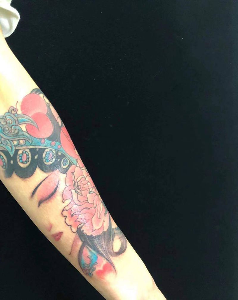 当前位置: 首页 >陕西省西安市纹身店-西少爷刺青艺术馆纹身图案>花旦纹身图片_手臂新传统纹身图案