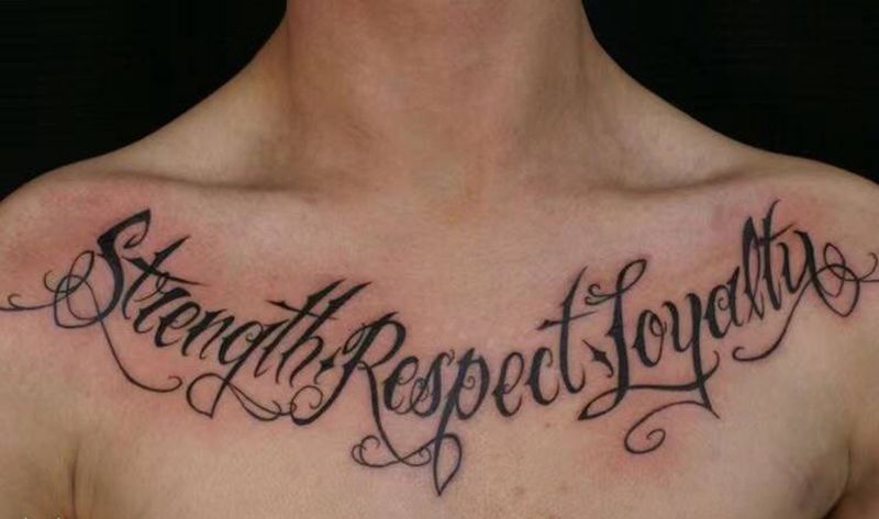 花体字纹身图片_胸部新传统纹身图案