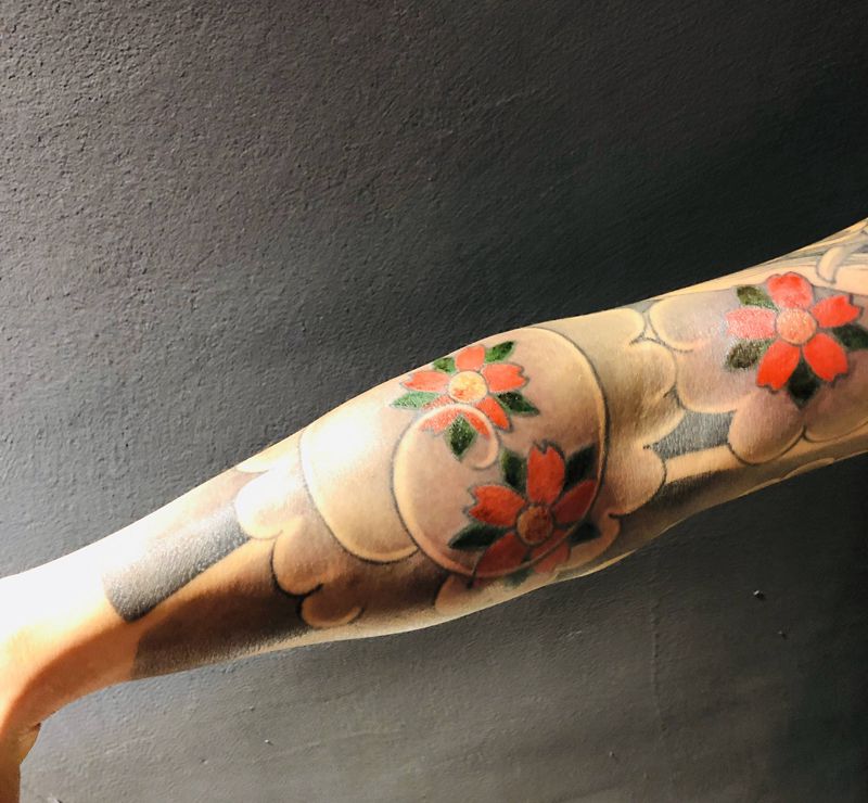 • T网红王老大花腿龙纹身图片_腿部新传统纹身图案