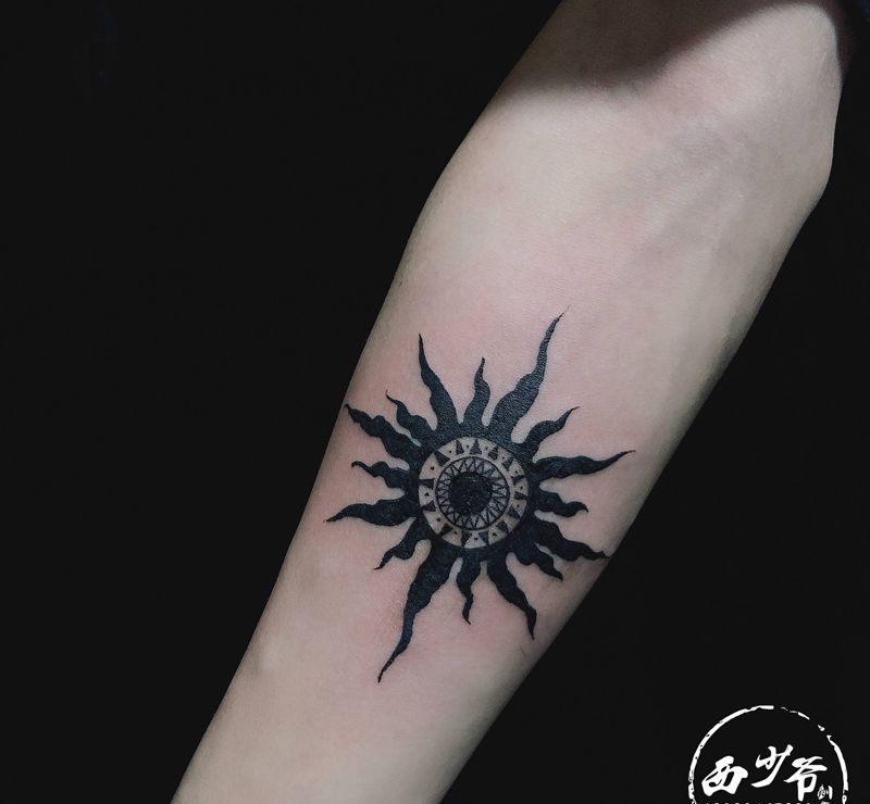 当前位置: 首页 >陕西省西安市纹身店-西少爷刺青艺术馆纹身图案>太阳纹身图片_手臂新传统纹身图案