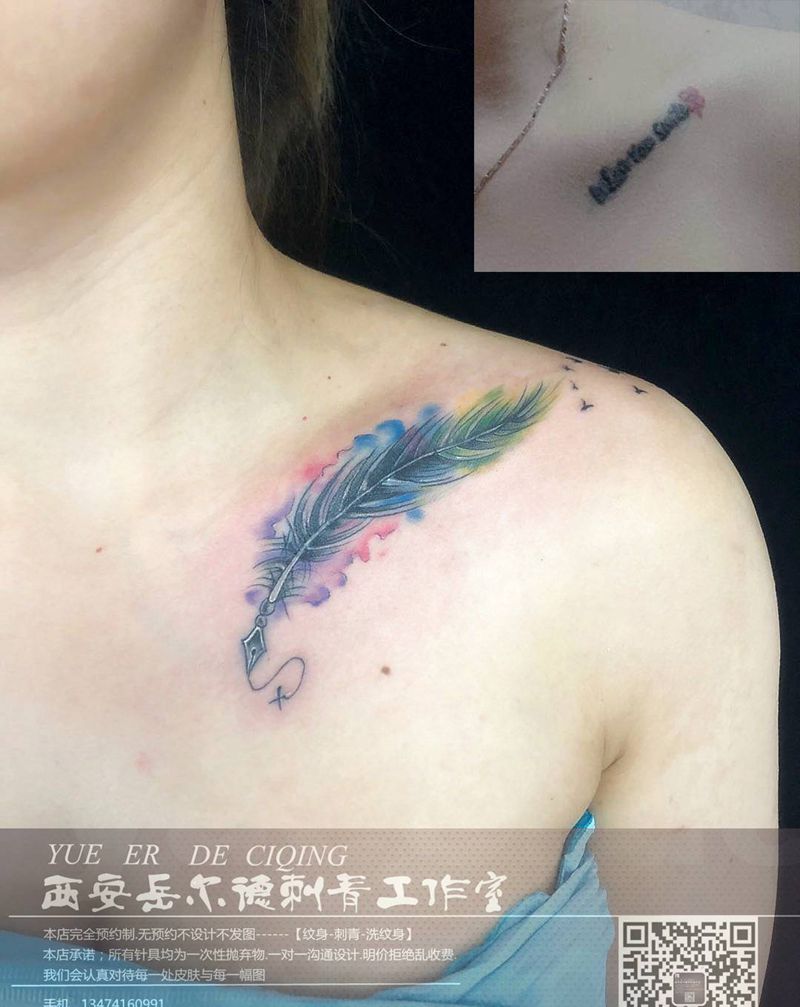 当前位置: 首页 >陕西省西安市纹身店-西安岳尔德刺青纹身图案>羽毛纹身图片_胸部水墨遮盖纹身图案