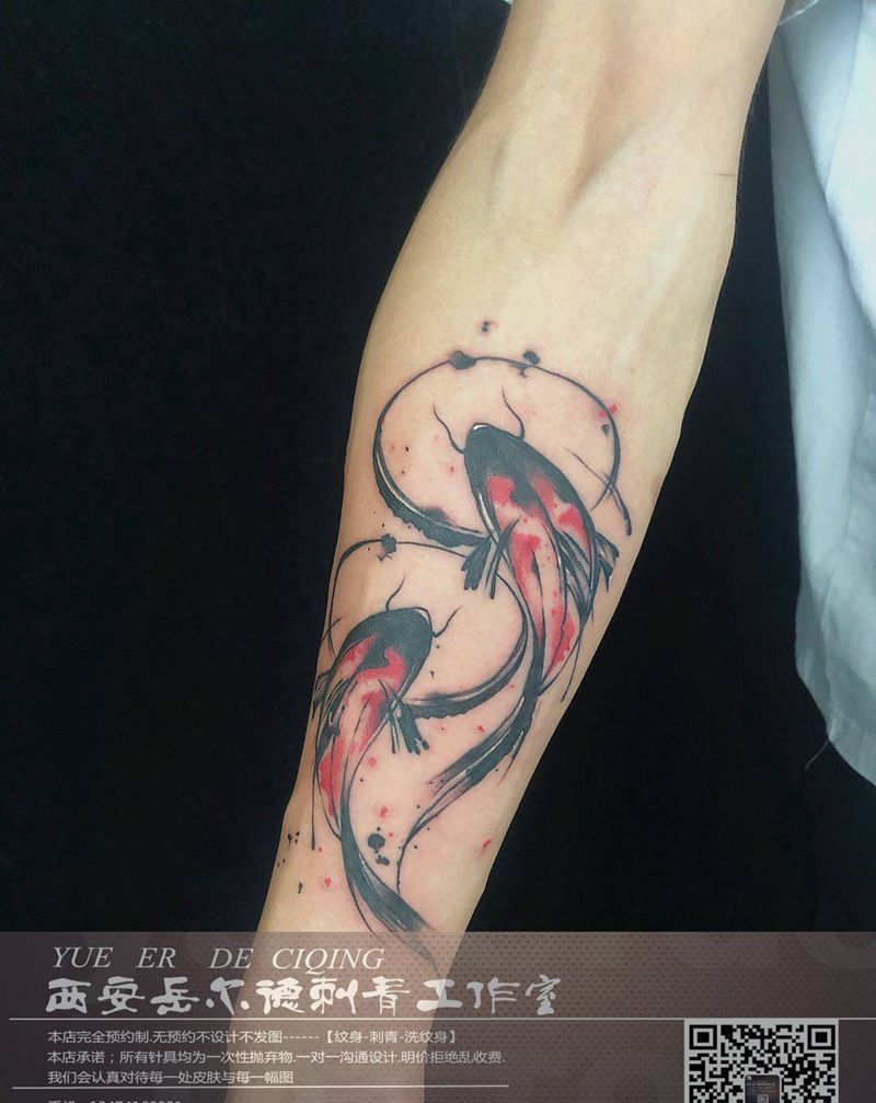 当前位置: 首页 >陕西省西安市纹身店-西安岳尔德刺青纹身图案>水墨鱼纹身图片_手臂水墨纹身图案