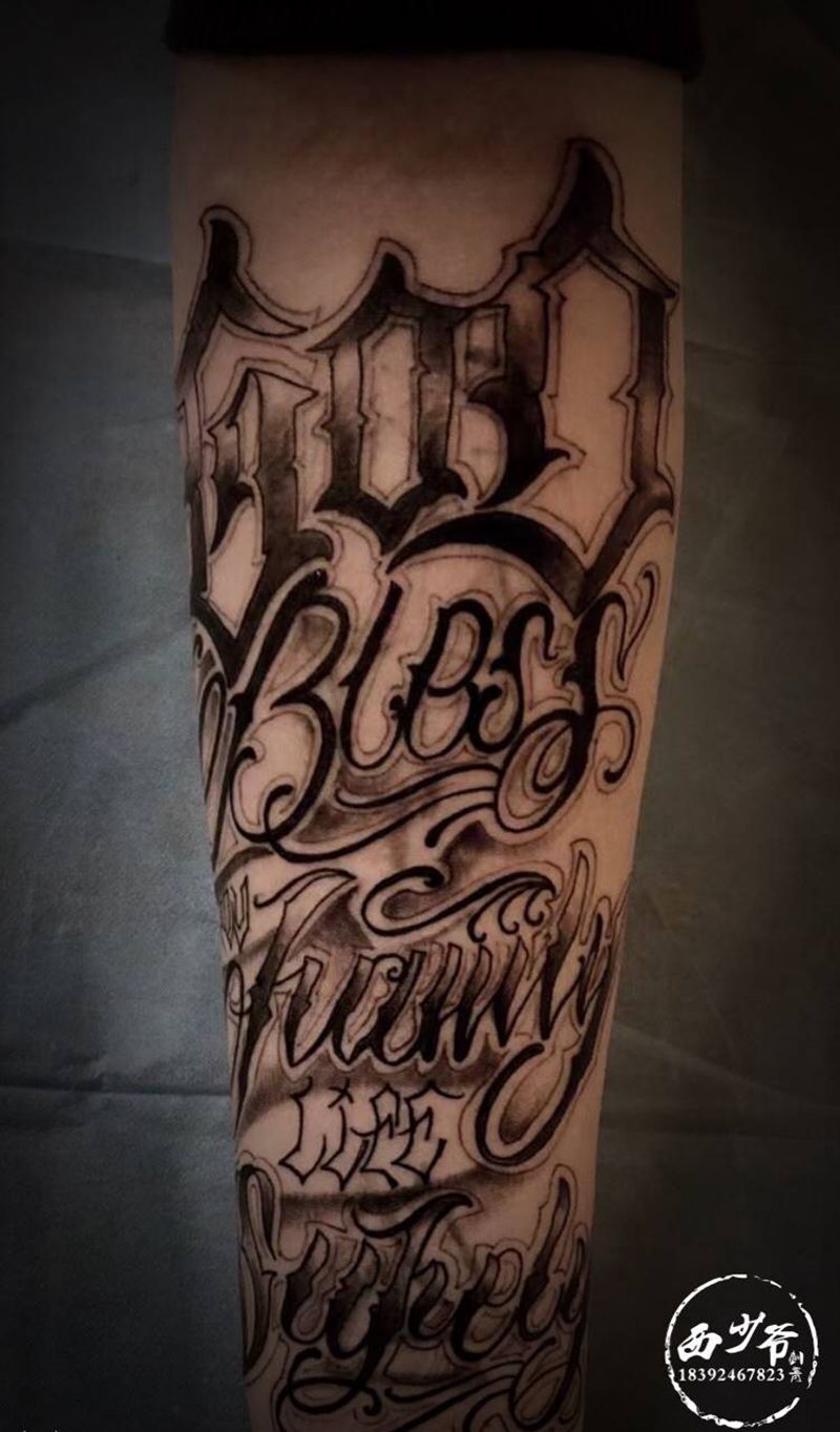 当前位置: 首页 >陕西省西安市纹身店-西少爷刺青艺术馆纹身图案>花体字纹身图片_手臂纹身图案