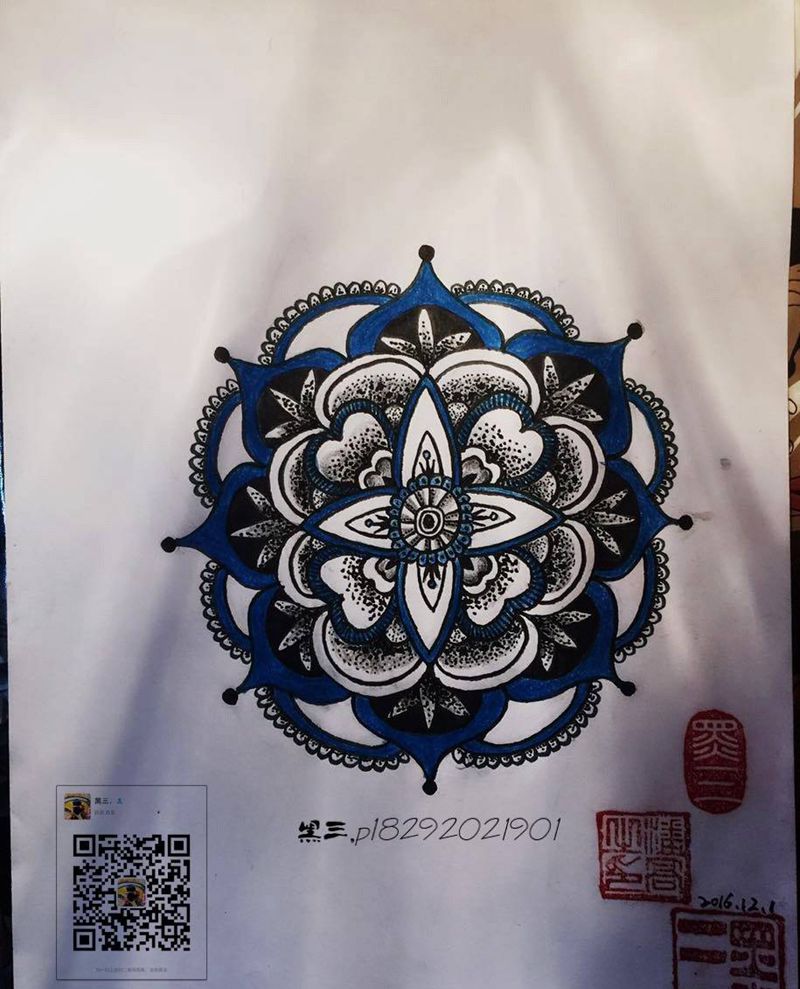 一组15张莲花纹身手
