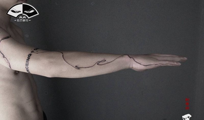 无限力纹身图片_手臂手部水墨水彩线条水墨小清新纹身图案