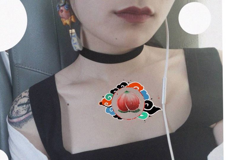 心淘纹身图片_胸部手臂水墨水彩桃子纹身图案