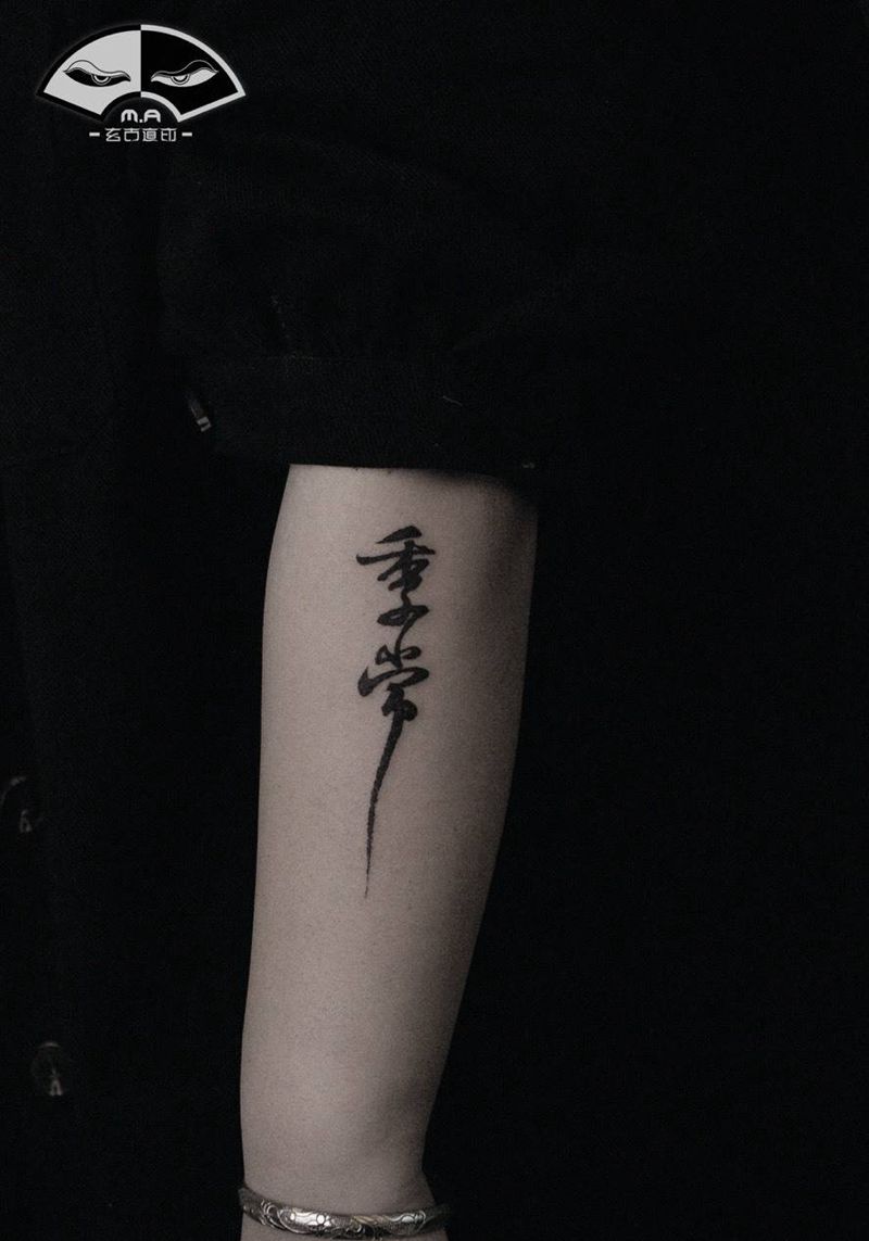 季长纹身图片_手臂手部水墨水彩水墨汉字纹身图案