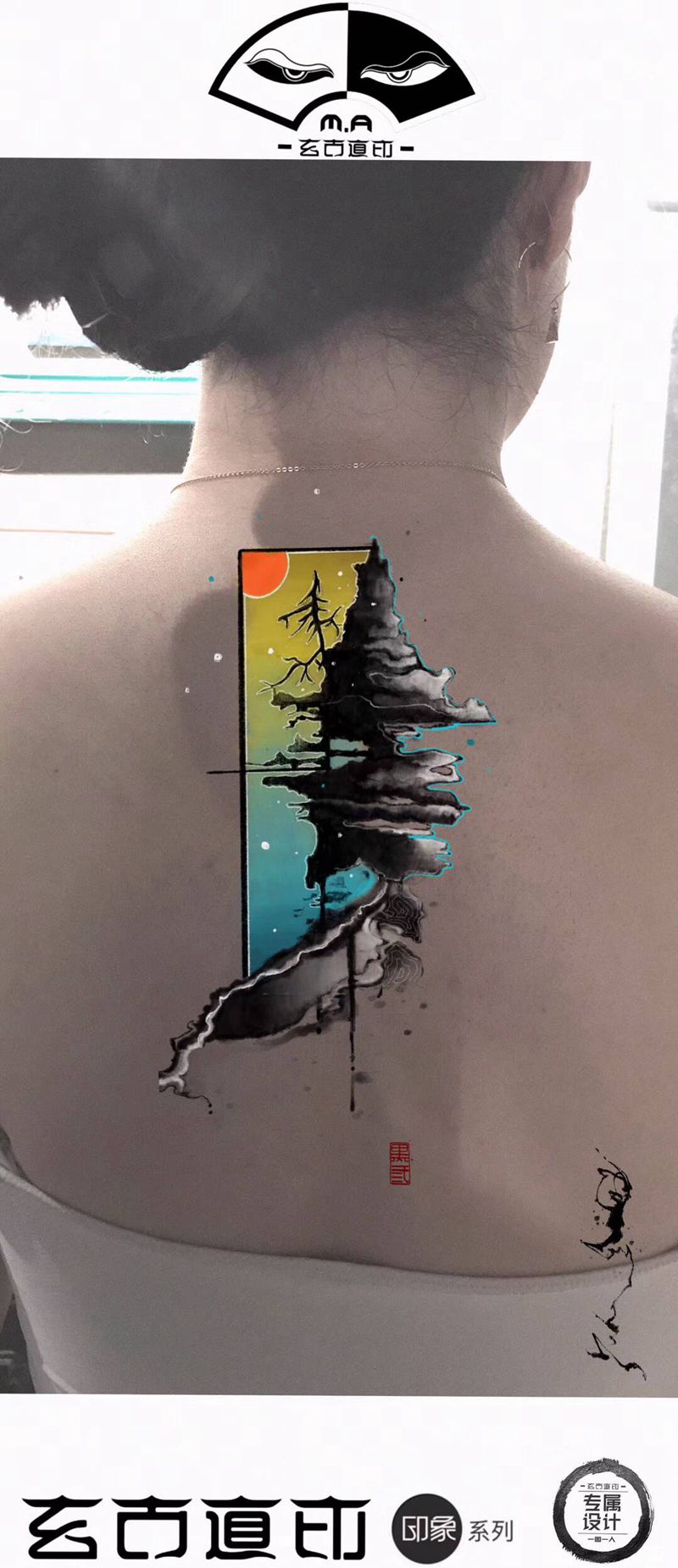 黑灰满背纹身图案