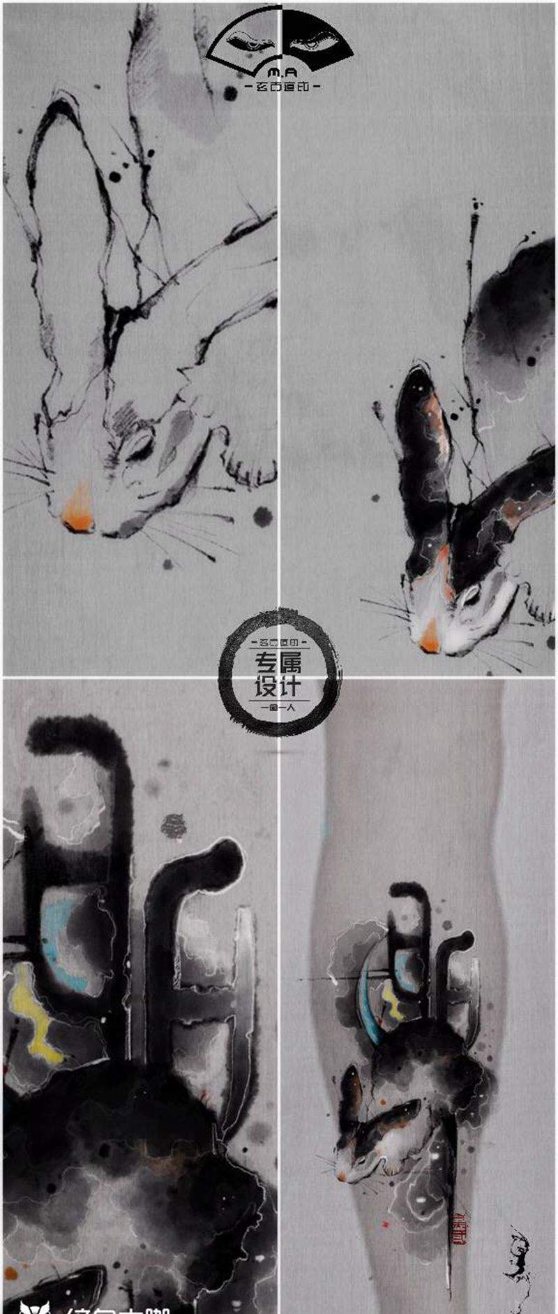当前位置: 首页 >陕西省西安市纹身店-玄古道印纹身图案>玉兔纹身图片_腿部手臂水墨水彩兔纹身图案
