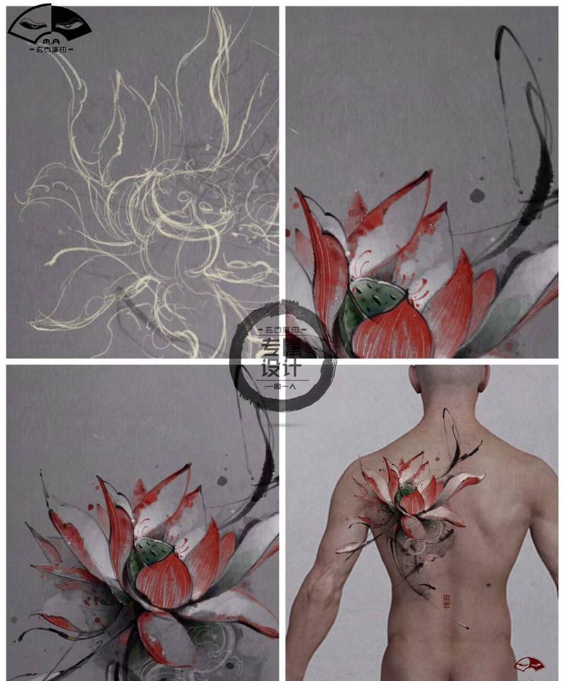 一组15张莲花纹身手