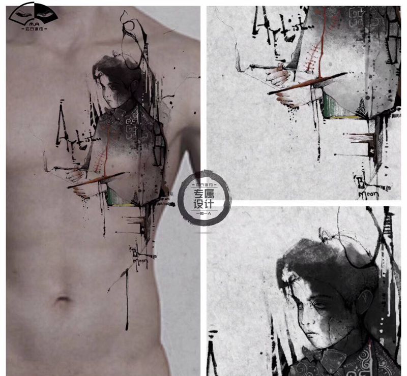 【少年气】纹身图片_胸部手臂水墨表现主义纹身图案