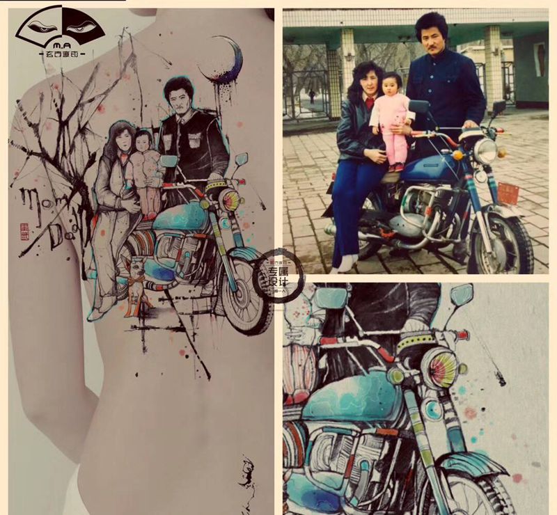 当前位置: 首页 >陕西省西安市纹身店-玄古道印纹身图案>家人设计纹身图片_手臂背部水墨水彩纹身图案