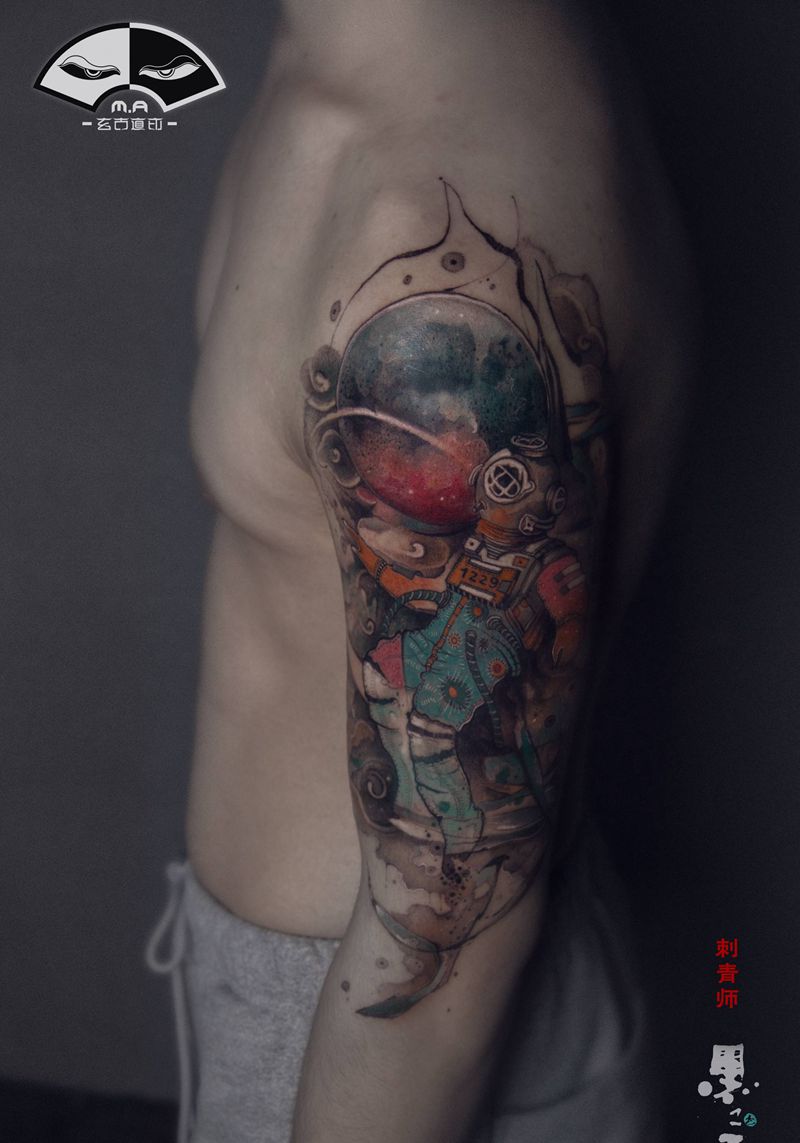 当前位置: 首页 >陕西省西安市纹身店-玄古道印纹身图案>探索纹身图片_手臂腿部水墨水彩纹身图案