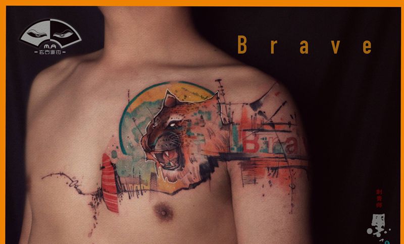 当前位置: 首页 >陕西省西安市纹身店-玄古道印纹身图案>【男人和老虎】纹身图片_胸部艺术表现主义纹身图案