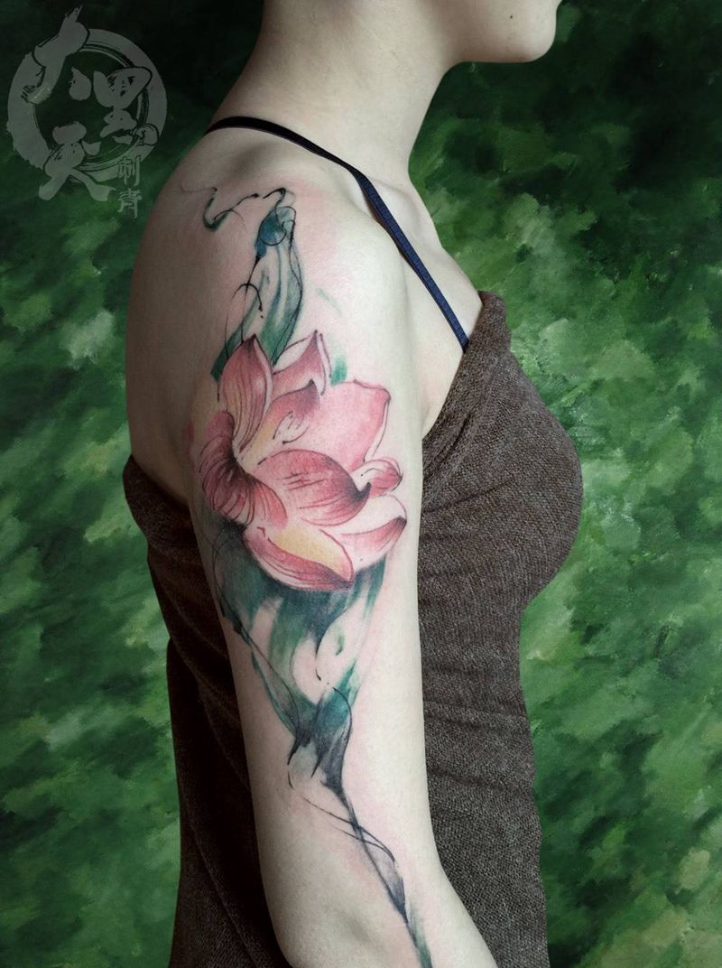 当前位置: 首页 >陕西省西安市纹身店-西安大黑天刺青纹身图案>《莲花》纹身图片_成品手臂手部国画传统习俗原创植物纹身图案