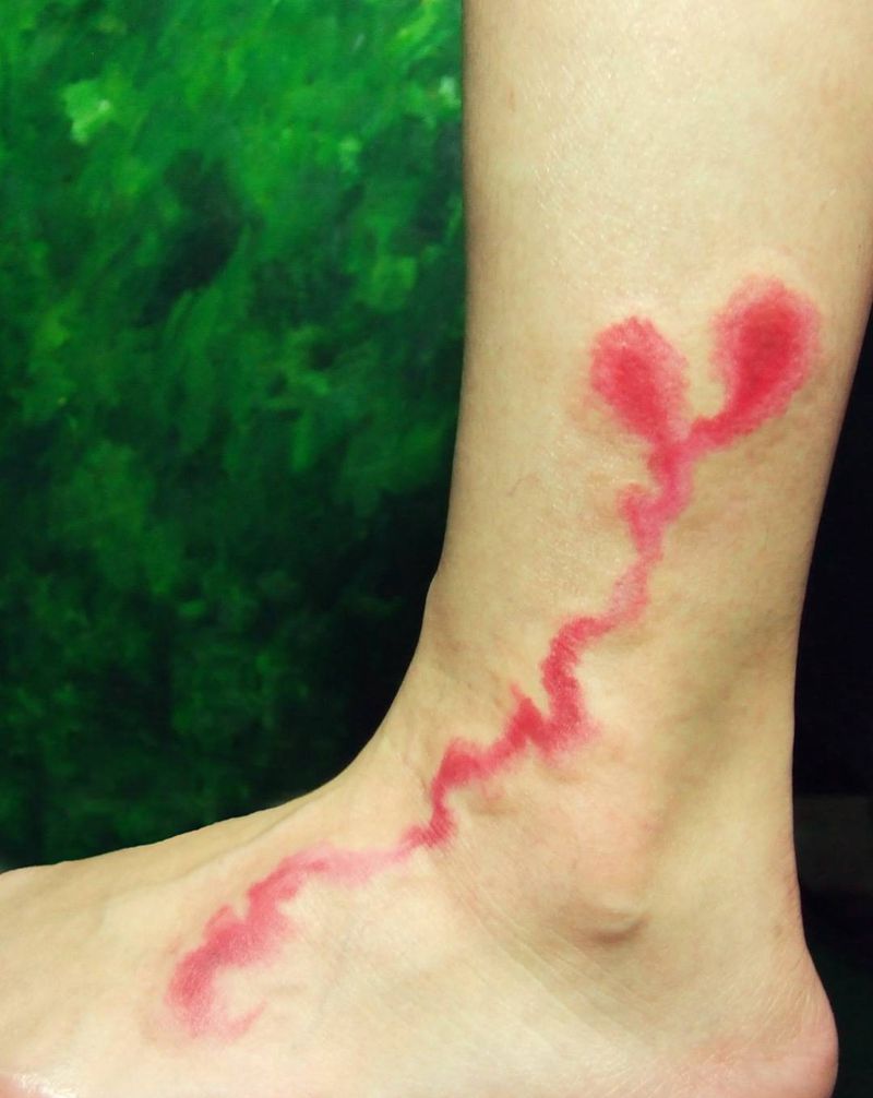 《心》纹身图片_成品脚部国画人物植物原创纹身图案