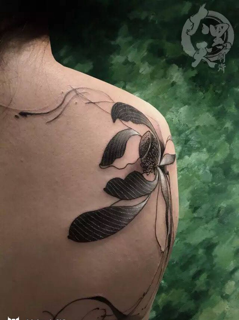 《莲花》纹身图片_肩部背部成品国画传统习俗原创静物宗教纹身图案