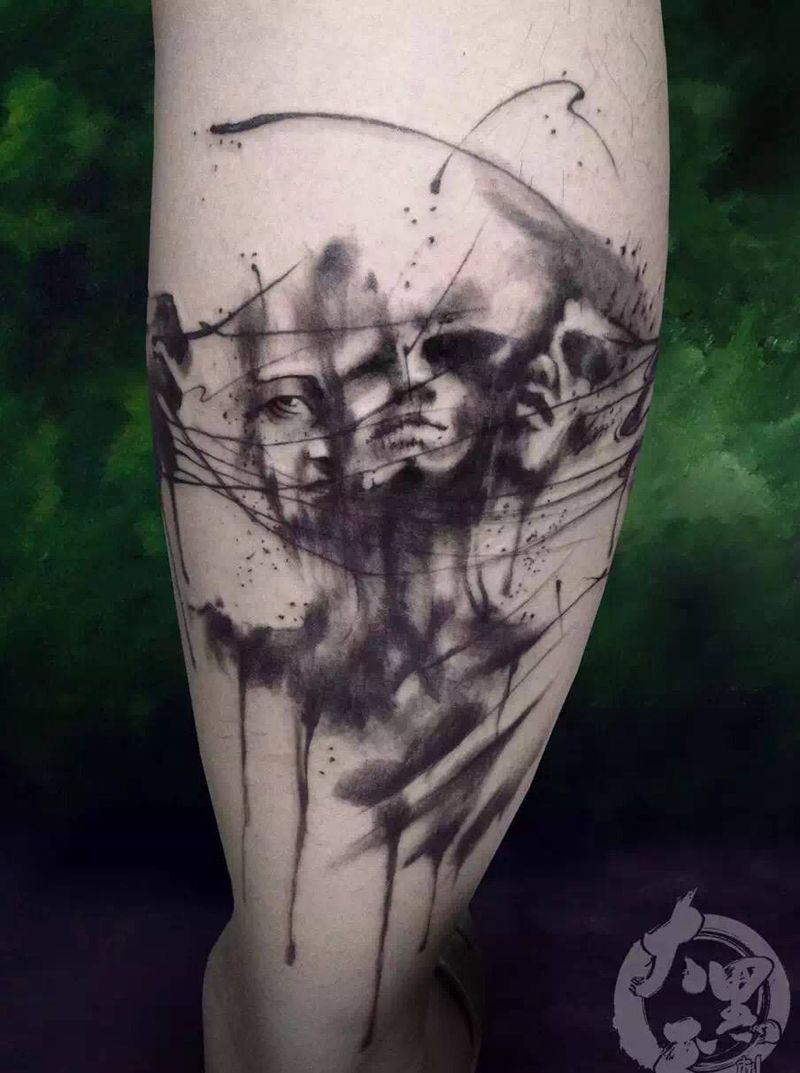 当前位置: 首页 >陕西省西安市纹身店-西安大黑天刺青纹身图案>《执着真实 撕破假面》纹身图片_原创人物欧美国画习俗脚部腿部成品纹身图案
