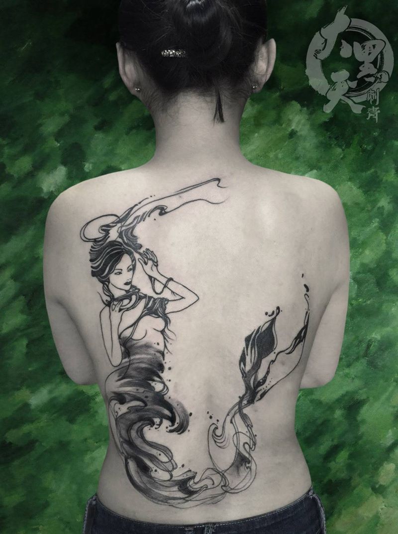 美人鱼纹身图片_成品背部肩部腰部国画传统习俗原创人物宗教纹身图案
