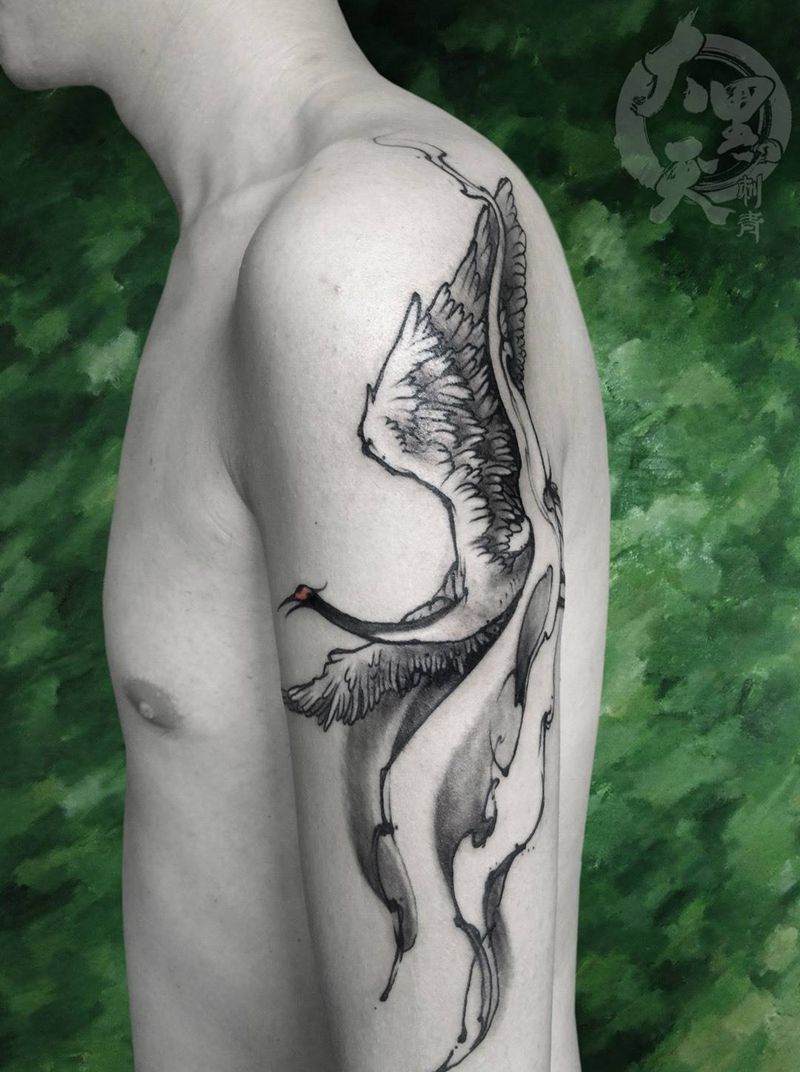 当前位置: 首页 >陕西省西安市纹身店-西安大黑天刺青纹身图案>鹤纹身图片