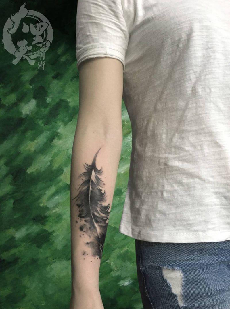 羽毛纹身图片_成品手臂手部国画习俗原创动物静物纹身图案