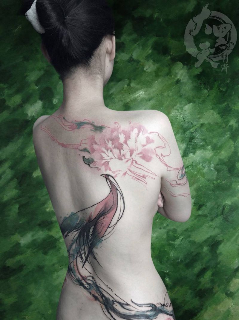 凤凰纹身图片_成品肩部背部腰部腿部国画习俗传统原创动物纹身图案