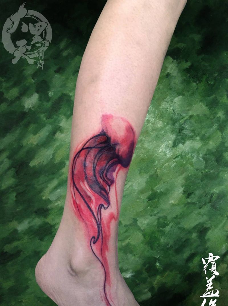 水母纹身图片_成品脚部国画清新原创动物纹身图案
