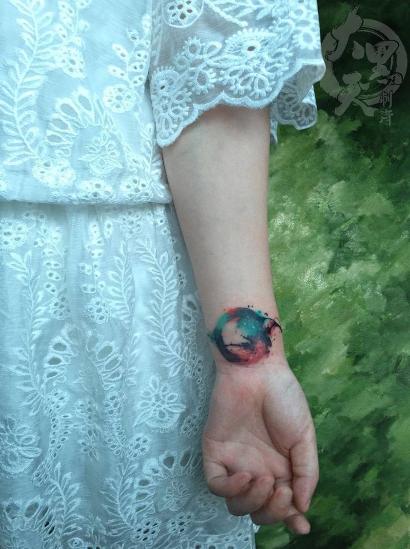 《太阳与月亮》纹身图片_成品手臂手部国画传统写实原创纹身图案
