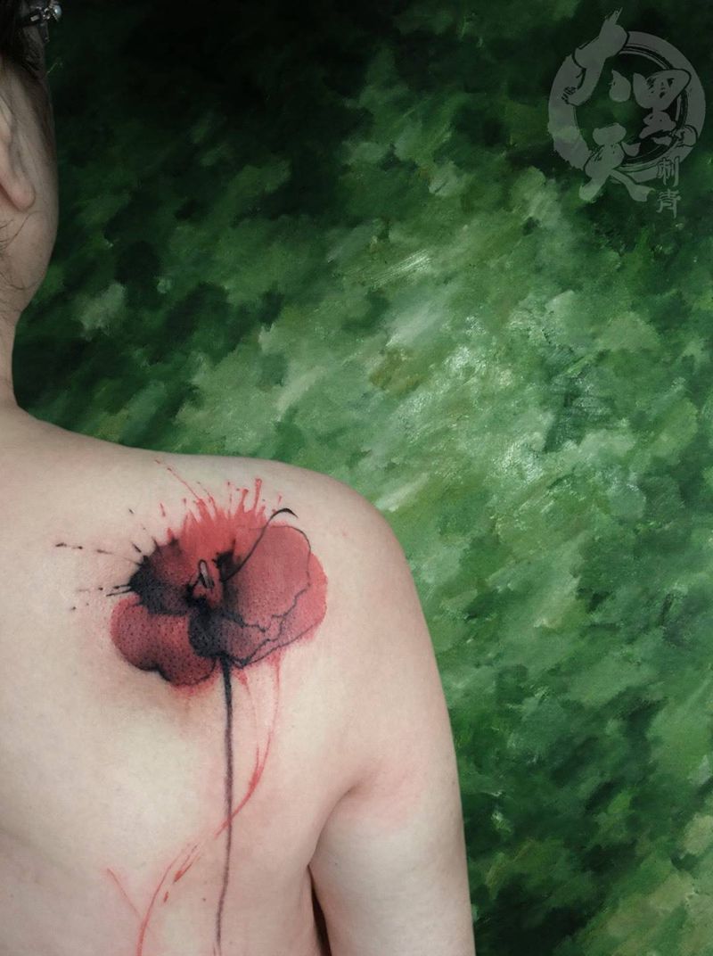 格桑花纹身图片_成品肩部腹部腰部背部国画清新传统原创静物纹身图案