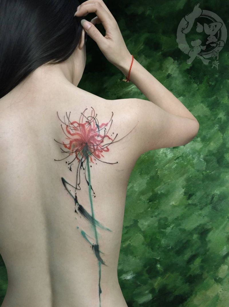 彼岸花纹身图片_成品肩部颈部腹部腰部背部国画写实原创传统纹身图案