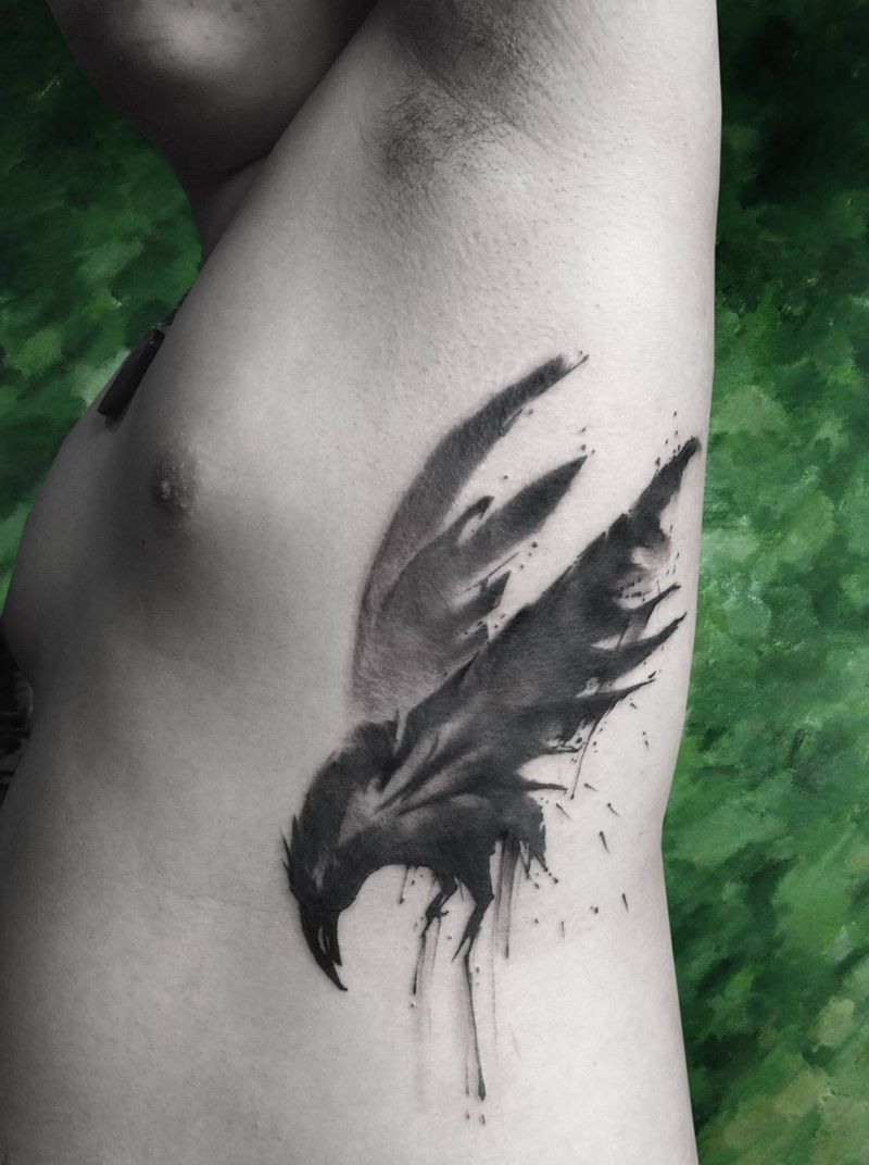 当前位置: 首页 >陕西省西安市纹身店-西安大黑天刺青纹身图案>乌鸦纹身图片_原创动物国画传统腰部成品纹身图案
