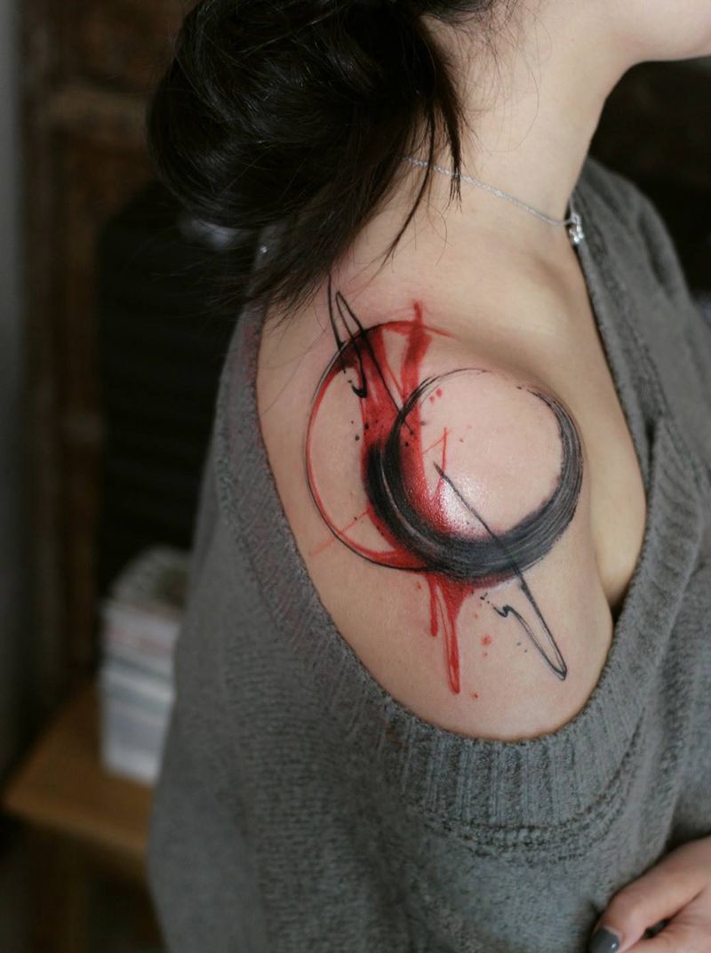 宇宙纹身图片_成品肩部欧美传统国画原创几何纹身图案
