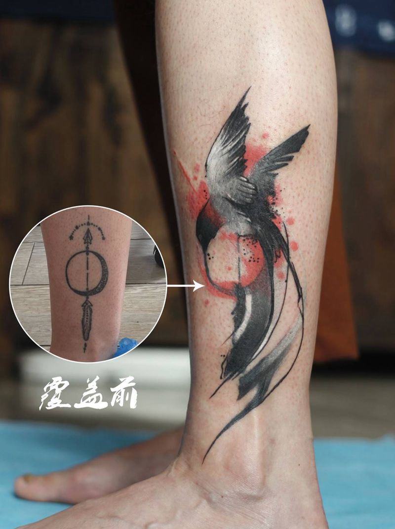 覆盖纹身图片_原创字符动物国画传统成品脚部纹身图案