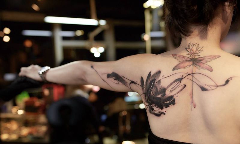 当前位置: 首页 >陕西省西安市纹身店-西安大黑天刺青纹身图案>莲花纹身图片_手部手臂水墨水彩纹身图案