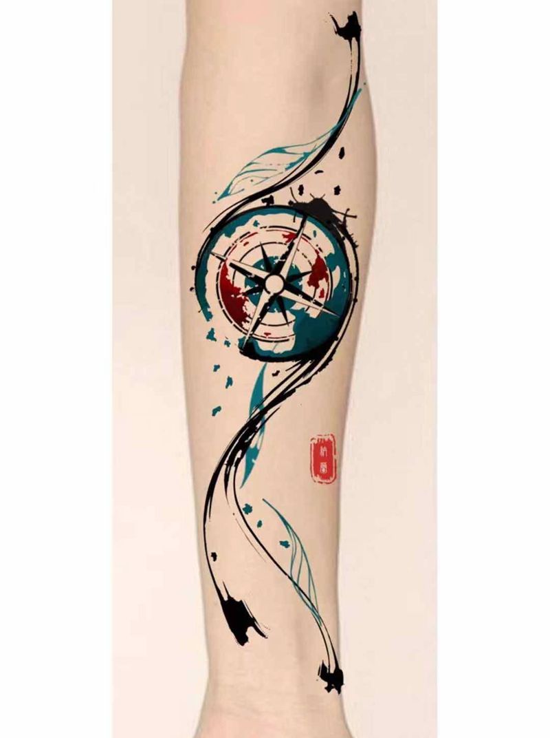 中式水墨-【指南针】纹身图片_手臂水墨指南针纹身图案